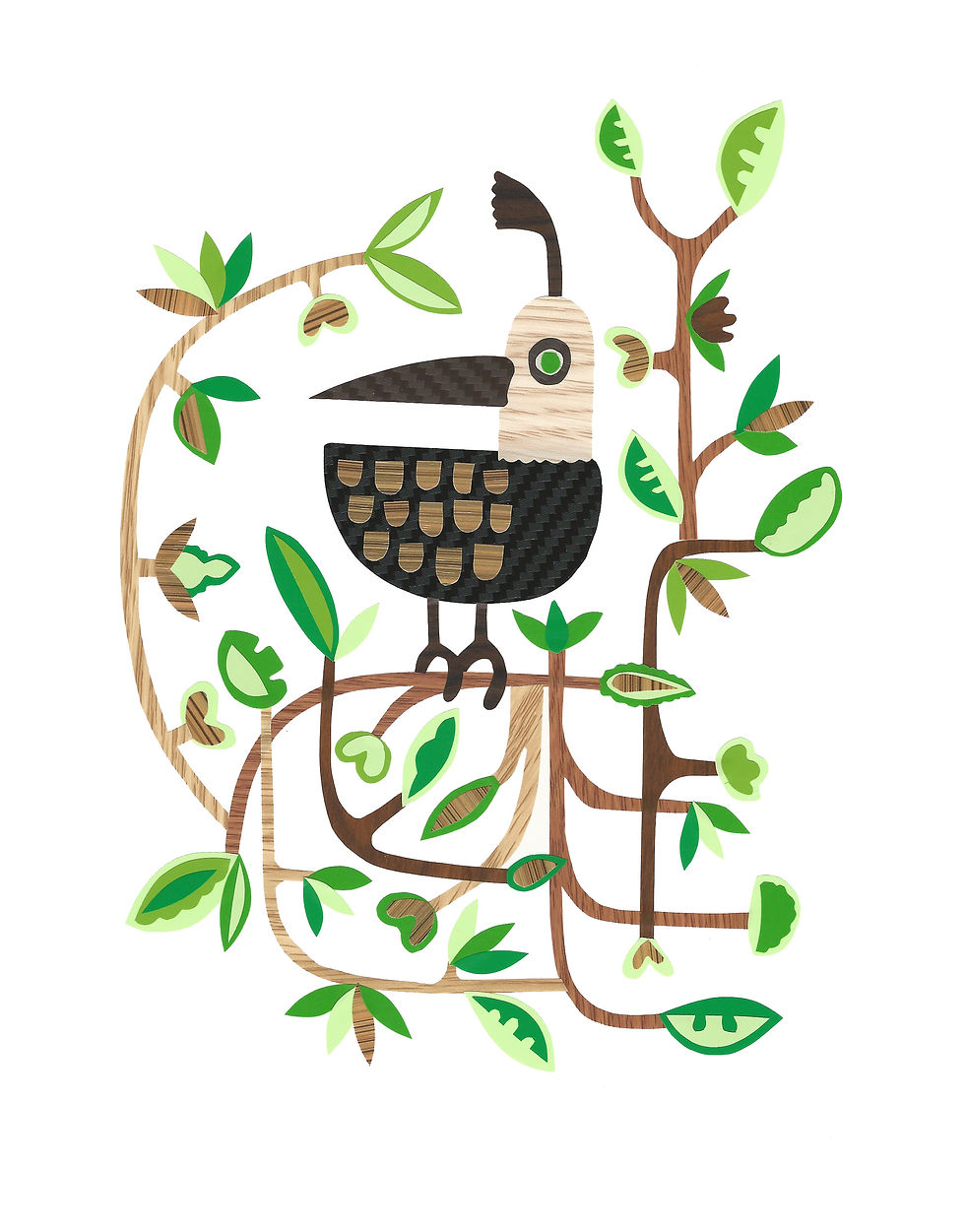 My original bird collages, made from hundreds of tiny hand-cut elements. I have many of these designs as graphic images for cards, postage stamps and playing cards!